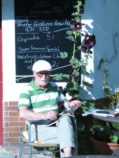 Warum immer in die Ferne schweifen? Viel Gutes legt sehr nah. Nein, man muss nicht nach Indien oder Feuerland und schon gar nicht nach Friedrichshain. Charlottenburg ist the place to be. Gestern habe ich einen kleinen Streifzug durch Charlottenburg gemacht und bin an einen süßen Platz gekommen: Wundstrasse/Ecke Horstweg. Groß, frei, Sonne satt und eben nette Kneipen. Ihr wisst nicht, wo das ist? Einfach U-Bahnhof Sophie-Charlotte-Platz aussteigen, in die Schlosstrasse rein, direkt links in den Horstweg und dann können Sie den Platz gar nicht verfehlen. Kneipen ohne Ende. Italienisch gleich mehrfach, bayerisch, mexikanisch, berlinerisch und köstlich Kuchen, cremigen Kaffee und leckeren Tee. Nicht zu vergessen den selbst gebackenen Kuchen im Horstweg bei Café-au-lait et Thé. Nur wollte hier der nette, selbst Kuchen backende Besitzer nicht aufs Foto, weil er gerade einen gebrochenen Arm hatte. Männer und Eitelkeit. Dafür durfte ich die reizende Cafébesucherin fotografieren.